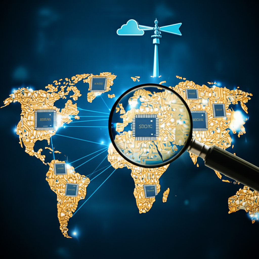 領先半導體公司晶片融入各種電子產品的插圖,象徵全球需求與技術進步