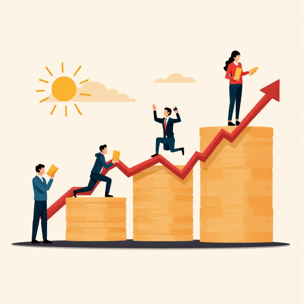 金融市場上漲趨勢圖示,帶有金色點綴的像素藝術風格,營造樂觀氛圍